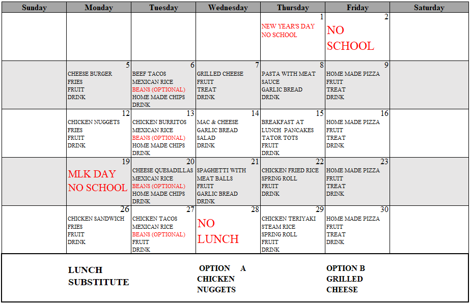 January Menu S.t Bede